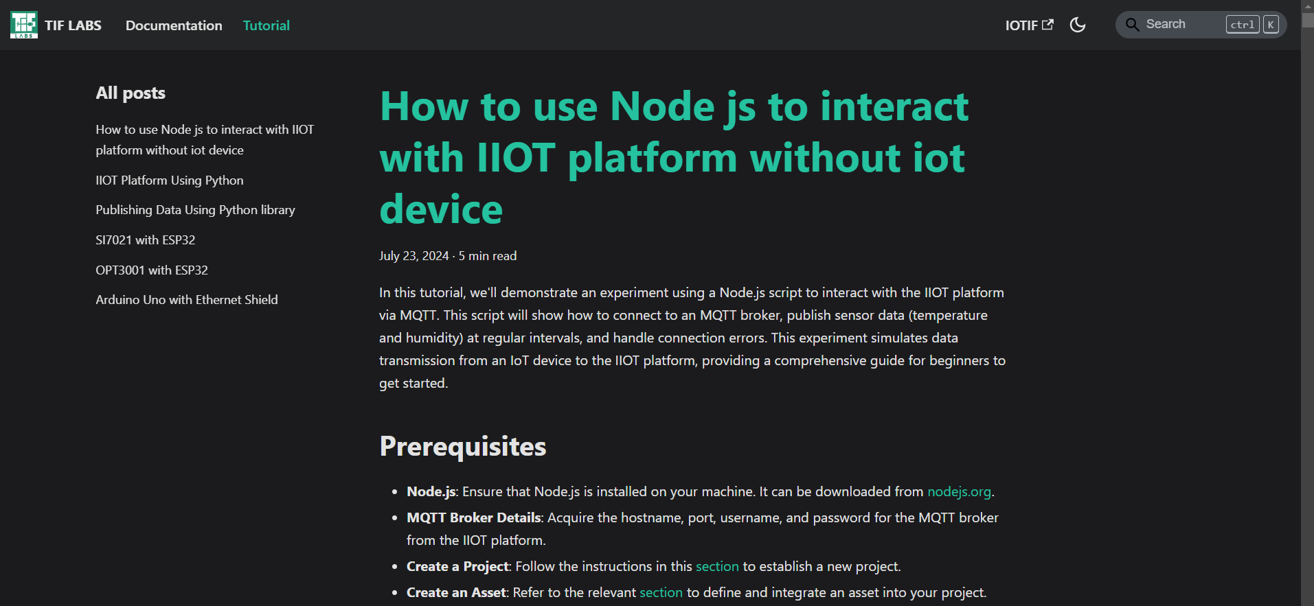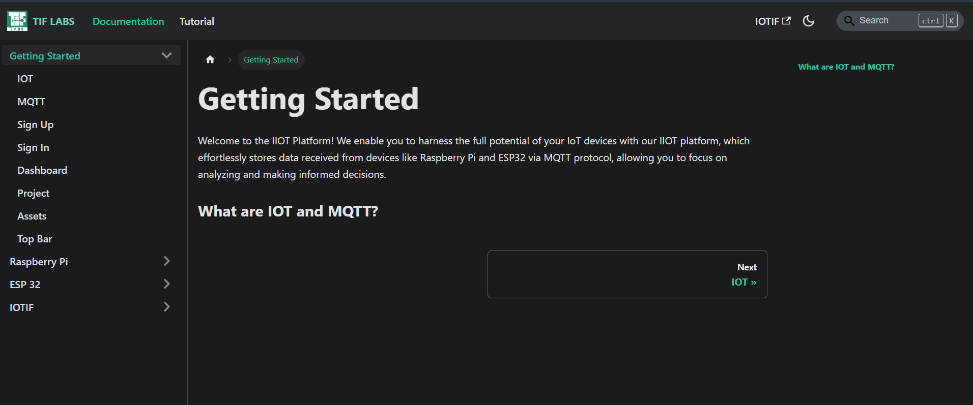 The Documentation section is your go-to resource for understanding how to use the IIOT platform. It contains detailed instructions, covering everything from the basics of getting started to more advanced operations.